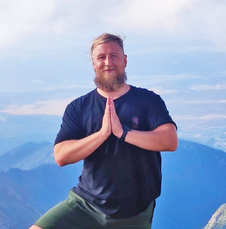 Wyśrodkowany między podejściem naturalnym, a naukowym. W wolnym czasie chętnie chodzi boso po górach, korzysta z zimnych kąpieli, ale też sauny, wspina się, uprawia parkour, kalistenikę, jogę, ale jest też 195cmowym i 120kgmowym olbrzymem z siłowni, który nie zatracił swojej funkcjonalności, wręcz przeciwnie, dba o nią z należytą starannością. Przebył też swoją drogę w celu odzyskania swojego zdrowia po poważnej kontuzji. Od 2017 roku nie je mięsa i jako technik żywienia lubi edukować o możliwościach dietetycznych np. o poście przerywanym.